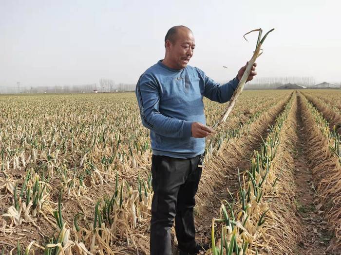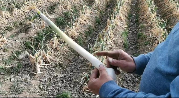 “现在地里的葱属于春天的发芽葱,它最佳的收获季节是在长到5个叶和抽薹开花之前的期间,要等一个月后”。刘奎成告诉新黄河记者,章丘大葱之所以口感好,收获时机非常重要,为保证大葱的品质,他有时候需要顶住客户的高价“诱惑”。“章丘大葱正常情况下葱白能生长到75-80厘米,惊蛰刚过,大葱现在由于缺水,葱白中上部分尚未彻底返好,影响口感、‘颜值’,也影响产量。”他解释说:“种大葱有个小秘诀,‘秋天不能断水,春天不能水大’,春天地温刚刚开始回升,水大了地温低容易起灾,虽然大葱现在正需要浇上市前的最后一水,但时机非常关键。”