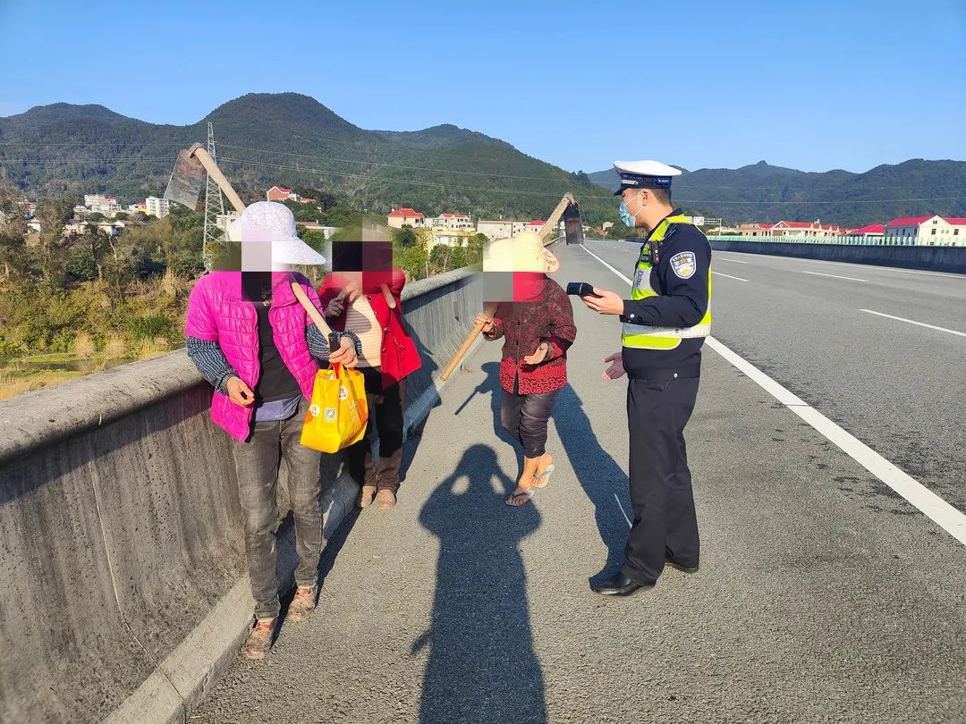 2月27日14时35分,福州高速交警巡逻至甬莞高速B道750KM+700M处时,发现一老人肩扛一根长达2米的木材横穿马路,民警立即靠边停车示警,迅速将老人带离高速公路。事后,五大队嵩口中队联同嵩口养护站在对附近高速防护网进行排查,确定行人上高速的隐患点,在沟通过程中发现该名老人经常横穿高速公路,随即决定对其进行“点对点”靶向交通安全宣传。