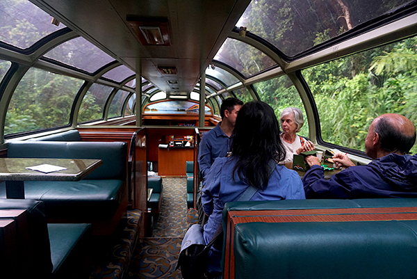不过直至终点我才发现,在180度透明玻璃天窗,并提供早餐茶点的游客车厢之后,还拖着几节简单的绿皮车厢——只是也没见几个人下来。