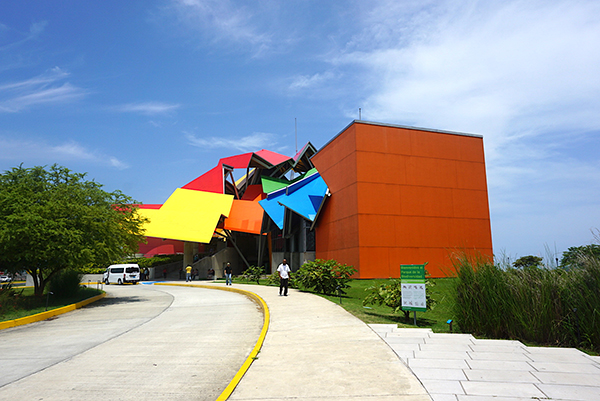 棕榈树密布的狭长堤坝,是起始的标志。建筑大师弗兰克·盖里在拉丁美洲的唯一作品——生物多样性博物馆(Bio Museo),像是毕尔巴鄂古根海姆博物馆被丢进了彩色颜料桶里,孤独地矗立在海岸上,煞是抢眼。博物馆有着英、法、西、葡、中五种语音导览,音轨是非常清楚而标准的普通话,而非前邦交岛的“国语”。三个大展厅都非常有意思,主要讲述巴拿马特殊的地理条件,是如何带来丰富的生物多样性,以及影响今天全球的生命样貌:400万年前,南北美洲最终相聚,太平洋和大西洋从此分手,海域盐分的差分带来了水温不一样的洋流,冰河期随之出现,原先满布非洲的雨林开始萎缩,抱着宝宝睡树上的猿类不得不下树谋生,直立行走的祖先直人出现。因为需要更多的呵护以避开野兽,婴儿期延长了,脑容量越来越大……这座绝妙的博物馆如此讲述人类诞生的故事。