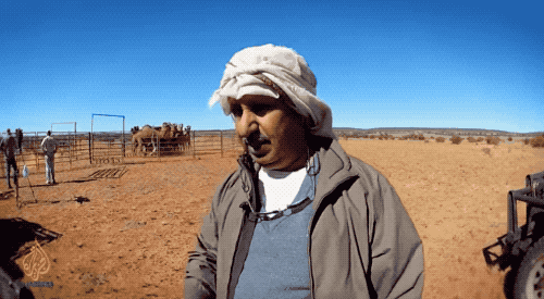 来自中东地区的半岛电视台纪录片主持人 Ali Sultan Al Hajri 受不了澳洲人对骆驼的屠杀。图片来源:水印等一下,既然野骆驼数量这么多又没病,拿来卖或吃不好吗?要知道在中东地区,烤全骆驼可是传统美食啊。
