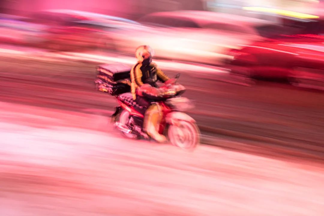 他们平均一天要骑行100多公里,多的时候200公里,配送范围覆盖朝阳区。每天的骑行都有交通风险。“骑行过程中随时会来单,但我们要看看手机,看手机的话,左手拿着手机,右手拧着油门,那前面突然出现个人就一个急刹车,这种情况太多了。”戴宁宁说。