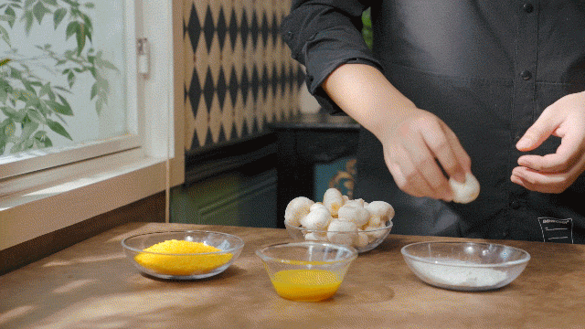 300克蘑菇洗净后,准备40克面粉、2个鸡蛋打匀、60克面包糠,按面粉、鸡蛋液、面包糠的顺序一层一层裹好蘑菇。再给蘑菇刷一层油,放入炸篮中,180度10分钟即可,搭配盐食用。
