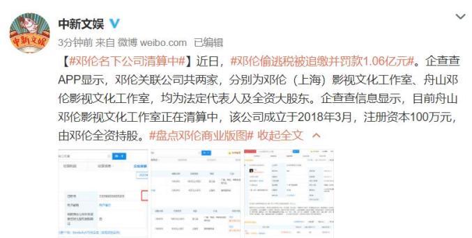 邓伦偷逃税被追缴并罚款1.06亿元!