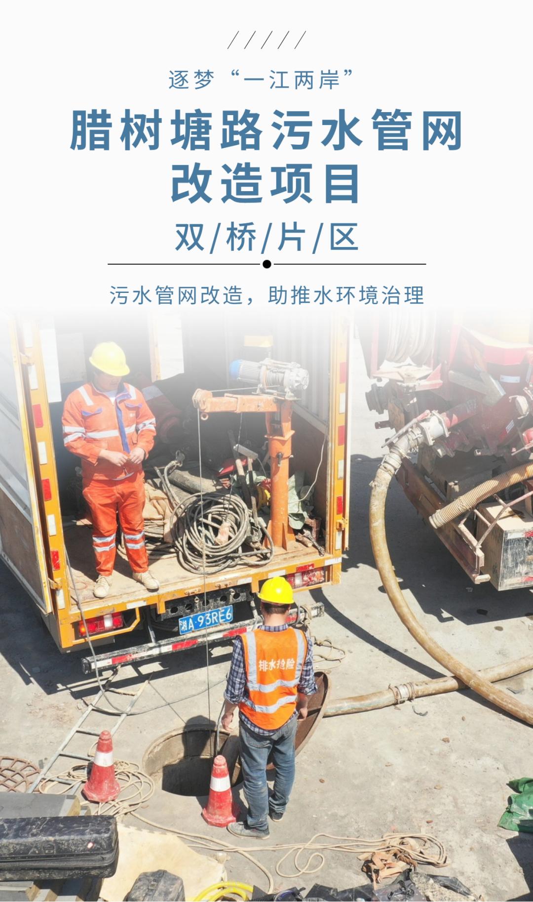 据了解,腊树塘路污水管网改造项目全长2400米,管径600~1500毫米。因目前原沿线管道近1900米及井室均淤积并有所堵塞,故近期启动提质改造建设工作。施工单位现场负责人李凯介绍,项目将对原排污管道先清淤后检测,再根据管道检测情况确定是否进行修复或新建。目前已完成管道清淤约300米,完成管道检测约230米。