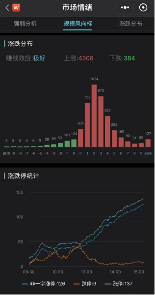 A股市场上演反弹行情,创业板指大涨逾5%,深证成指涨超4%,上证指数涨超3%。两市个股呈普涨态势,超4300只个股飘红,137只股票涨停,市场赚钱效应极好。