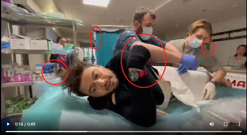 卡米利拍摄的另一段视频,从不同视角展示了前一段视频中被医务人员遮挡的背景画面。