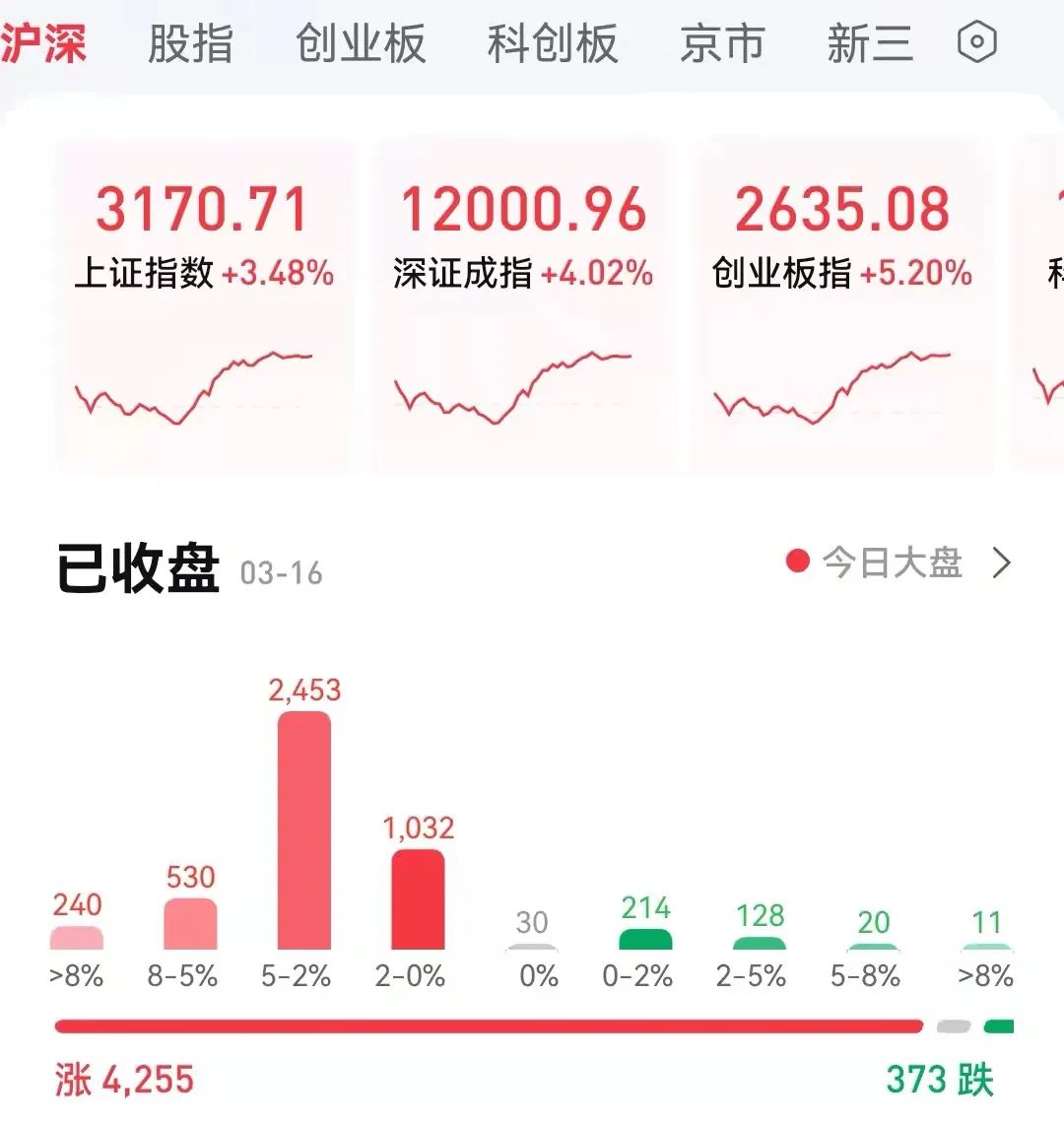3月16日,A股大涨。
