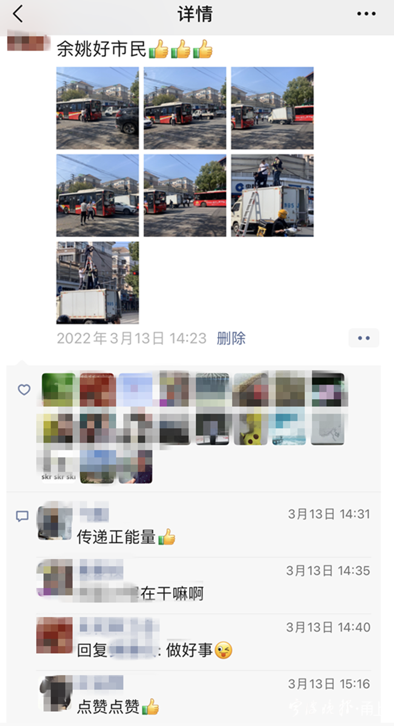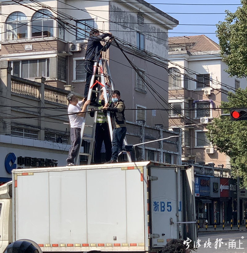 宁波街头光缆脱落,众多“托举哥”接力举起一条安全通道