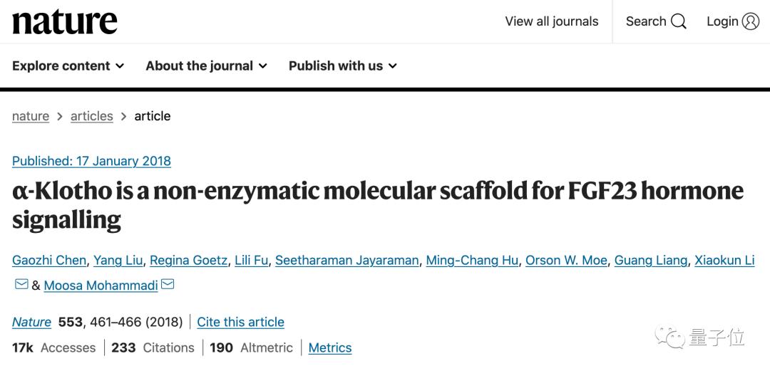 这是一种可协助传递延缓衰老激素信号的蛋白,相关研究曾在Nature上发表。