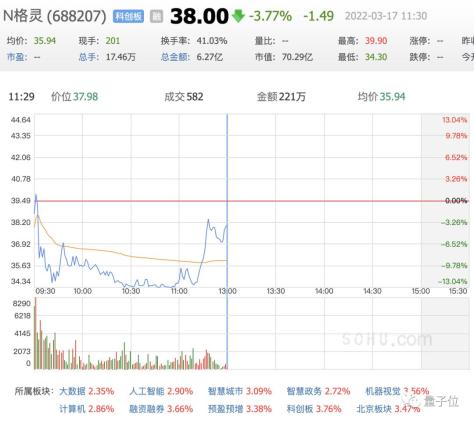 值得一提的是,今日一开盘即破发,下跌近4%。截止十一点半,股价为38元每股,市值约70亿元。