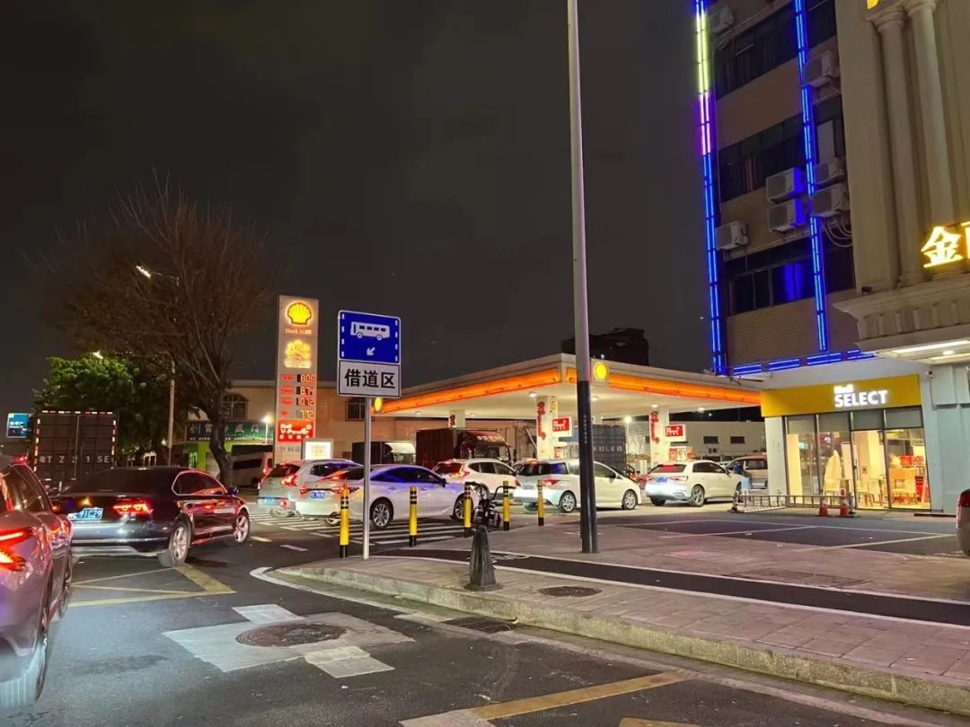 3月16日晚,石湾沙岗加油站出现排队现象。