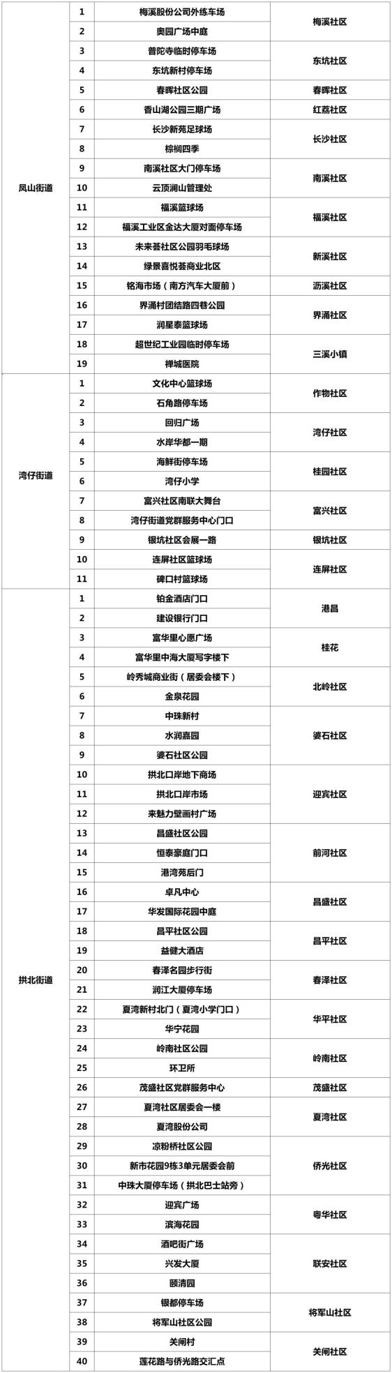 云埔街道:凯信东方华庭A2栋、品盛生活超市、福之岛生鲜超市;