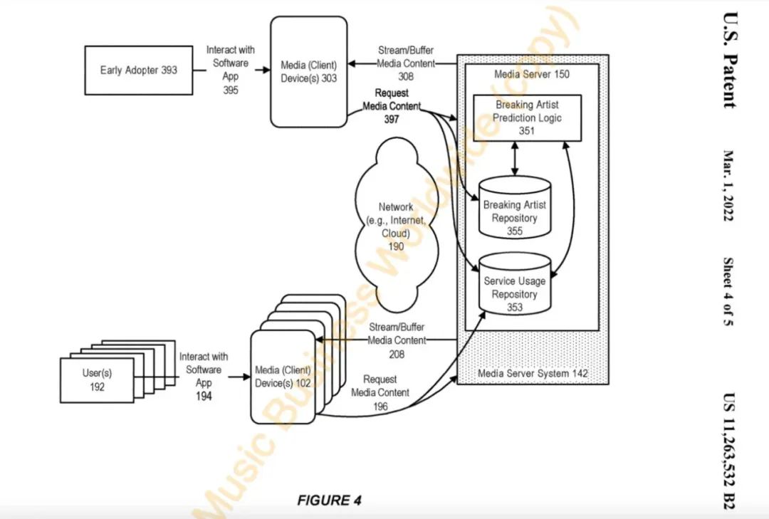 在专利说明摘要中,Spotify将这项专利称为“在流媒体环境中预测潜力音乐人的系统和方法”.至于何为“流媒体环境”,Spotify进一步补充道,系统数据将来源于多个流媒体平台。不过具体应用时将涉及哪些音乐流媒体平台,目前尚未可知。