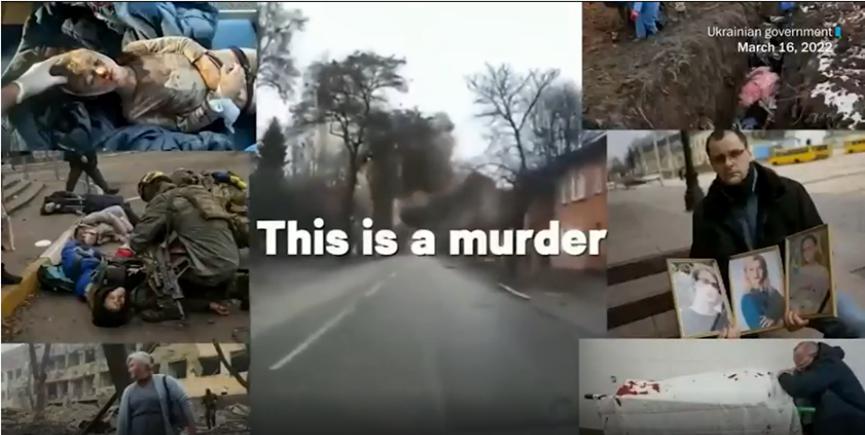 让这家美媒对乌克兰大为赞叹的,是泽连斯基播放的一段乌克兰制作的宣传视频。这段视频先向观众展现了乌克兰在本次冲突前的生活景象,随即以非常精妙的剪辑手法,把镜头切换到极有冲击力的交战过程。为了制造感官刺激,这段视频甚至不惜拍摄了大量鲜血淋漓、满身疤痕的躯体,并以一个“这是谋杀”的标语,把现场美国观众的感情推向了最高潮。