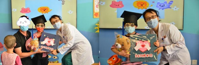 拨过了穗,领了毕业礼物,智楠告诉小贺,“你已经是结疗的成功人士啦,我们大家都祝愿你能够勇敢地迎接未来的生活与学习!要继续加油呀!”每次为小朋友举办结疗party时,智楠也都会邀请医生为孩子们送上她制作的成长记录册,让孩子们记住在医护、家长、社工和病区小伙伴们的陪伴下,度过的这段温暖时光。
