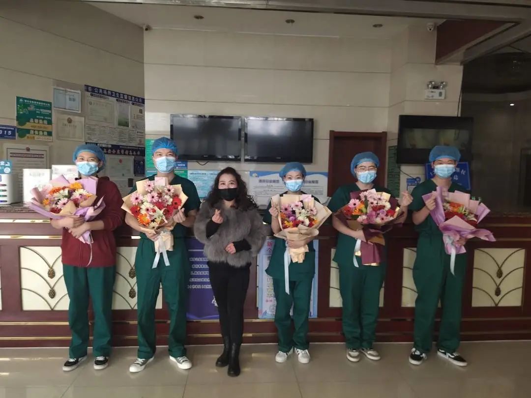 爱心人士送来5束鲜花原来,青海男孩代来扎西曾经得到过唯爱公益的资助。这次,他在唯爱公益群里看到刘楠等一群年轻人在抗疫一线辛苦奋战,便捐了100元,希望给他们买点东西以表心意。唯爱公益负责人耿万瑞来到王红梅的花店,打算买些鲜花作为礼物,但发现100元钱买两束花都不够。王红梅听说是送给隔离点医护人员的,当即慷慨表示,她再捐200元,为这些抗疫“小战士”每人送一束花。