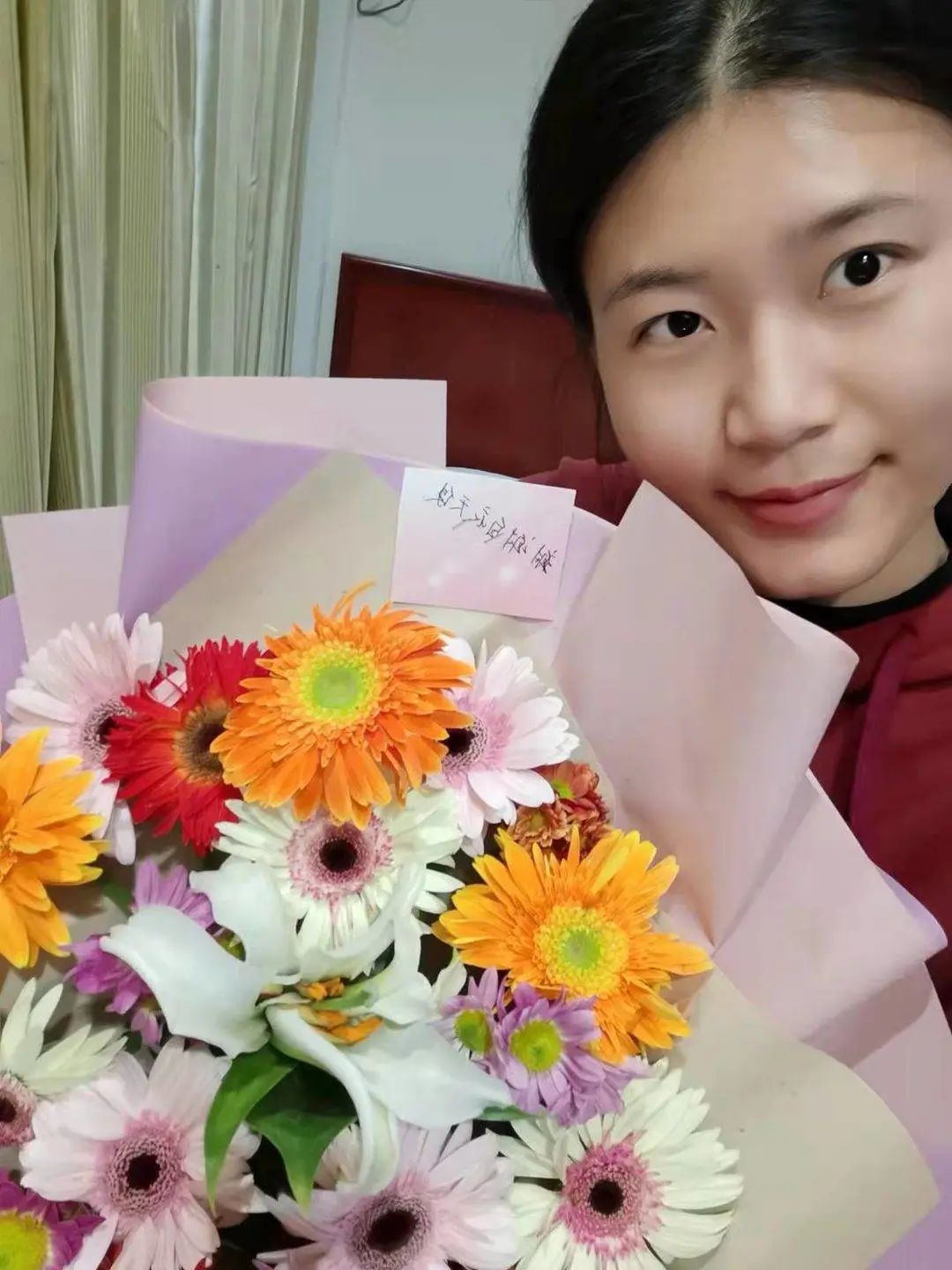 刘楠收到爱心人士送的鲜花3月13日下午,花店老板王红梅又送来惊喜,为团队5个人每人献上一束鲜花。这束美丽的鲜花,饱含着两地、两位爱心人士的情谊。