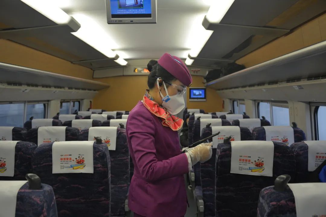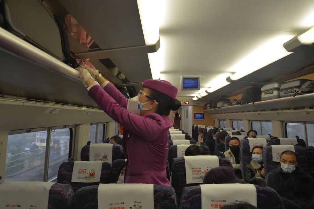 终到前✦列车长督促各工种按标准落实站前工作,检查到站前车内卫生情况。提前做好与车站办理高铁快运、订餐配送、重点旅客及重点运输等各项业务交接。