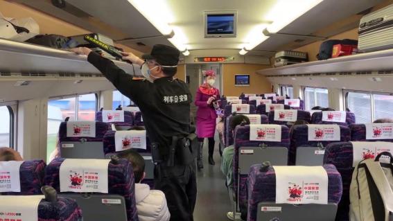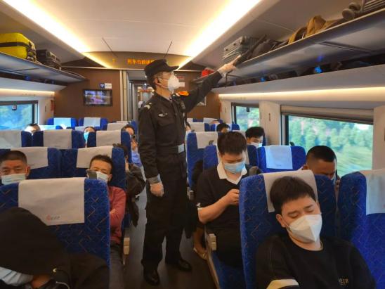 列车长会同安全员进行二次查危工作,开展对隔离席位、空余席位查验,作业中实时使用巡检仪进行视频摄录。