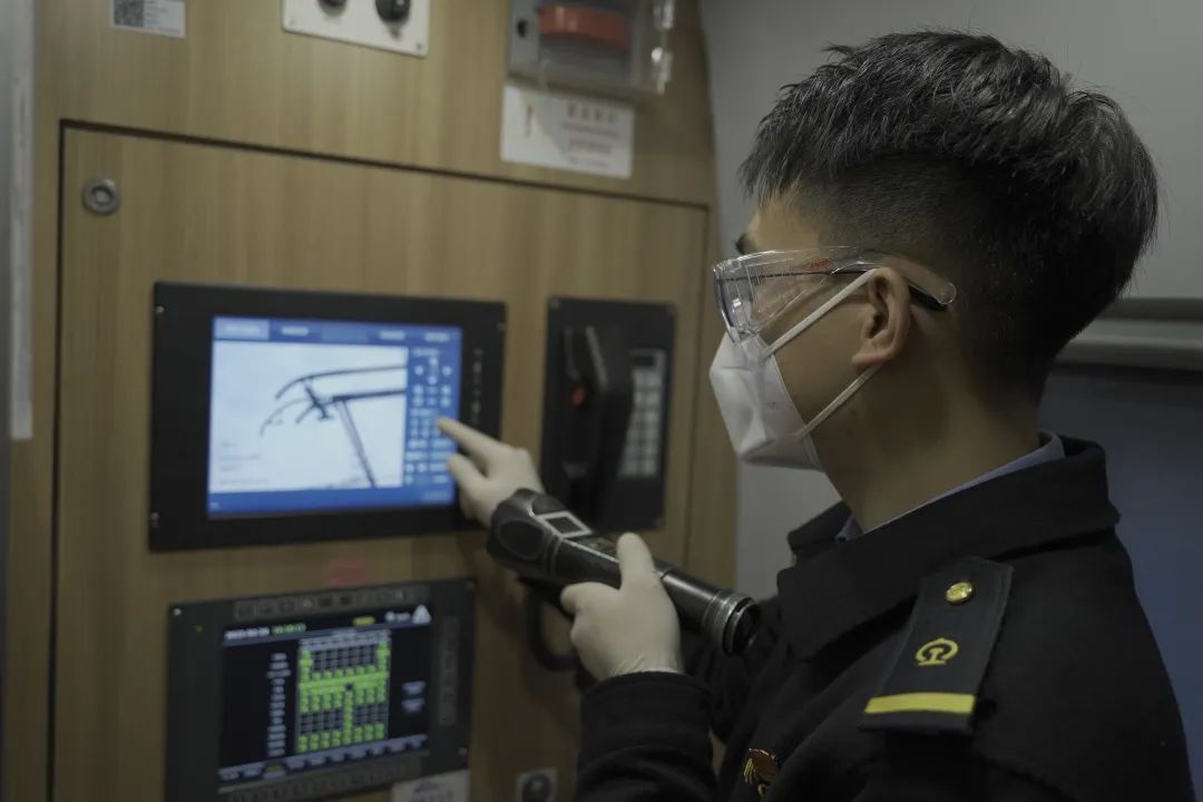 随车机械师对列车进行全列巡视,查看电气柜状态、监听转向架异音、查看高压设备状态等工作项点。