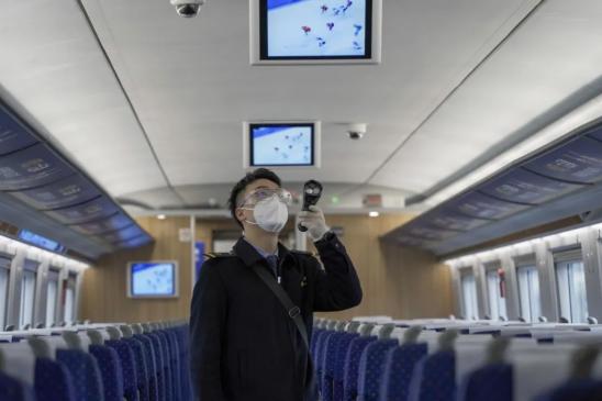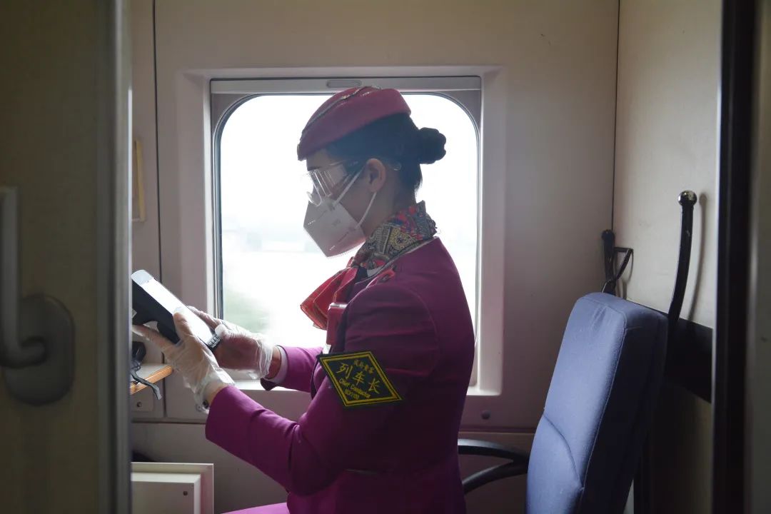 列车长对全列进行巡视检查。疫情期间,开展全列旅客的测温、检查行程码工作。