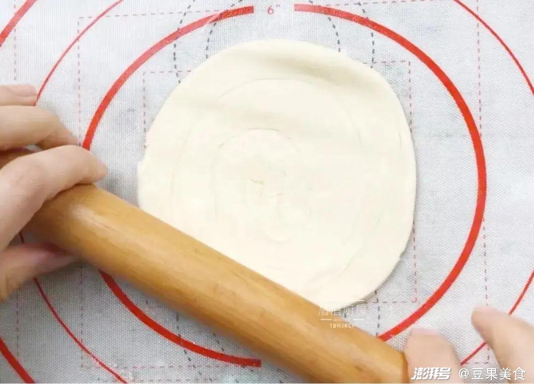 11. 压扁,擀成饼皮状;