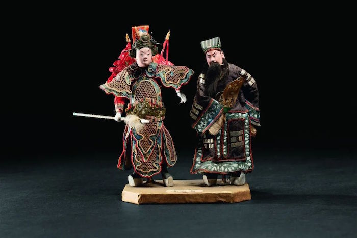 作品根据苏州博物馆藏近代沈万丰手捏戏文《天水关》复制,老生诸葛亮头冠“八卦巾”,戴三髯,穿厚底靴,净角姜维立于一旁,二人作交谈状。原剧取材自《三国演义》第九十二回,讲述诸葛亮出兵中原,用计软硬兼施,于天水关收降大将姜维的故事。