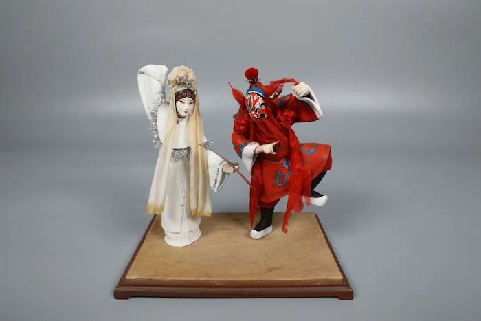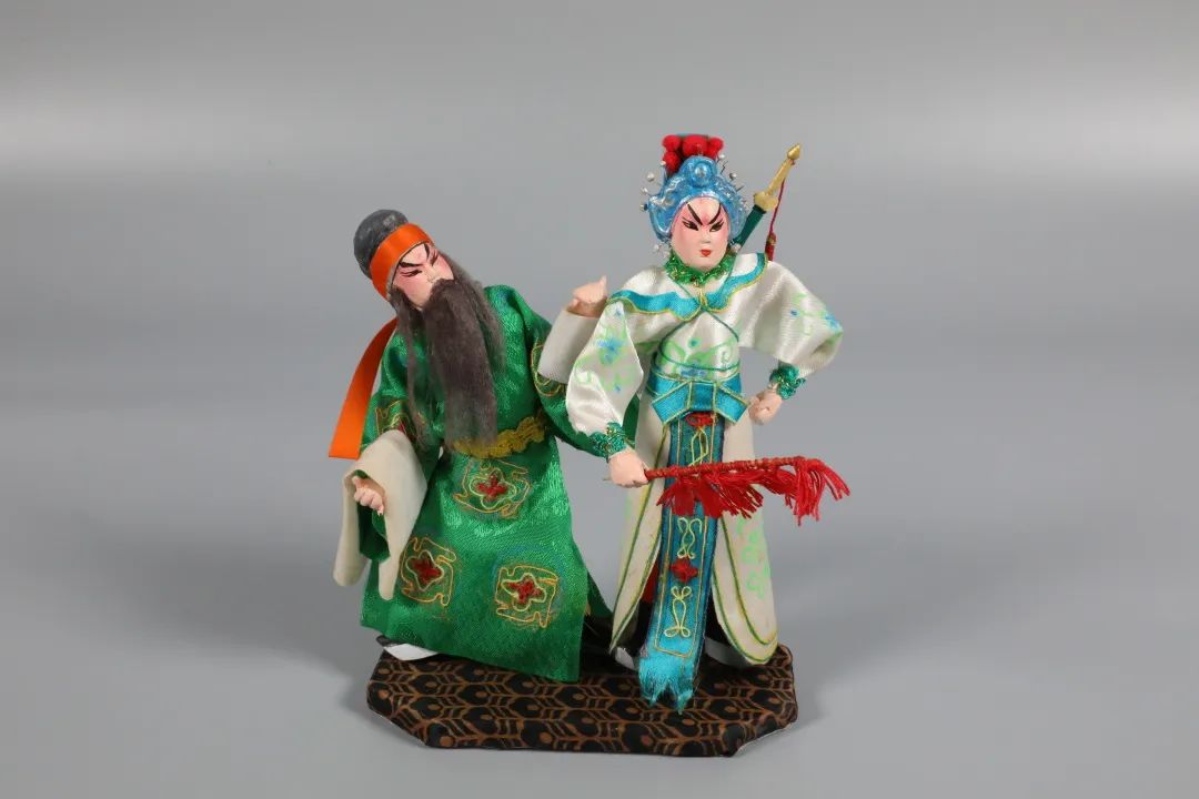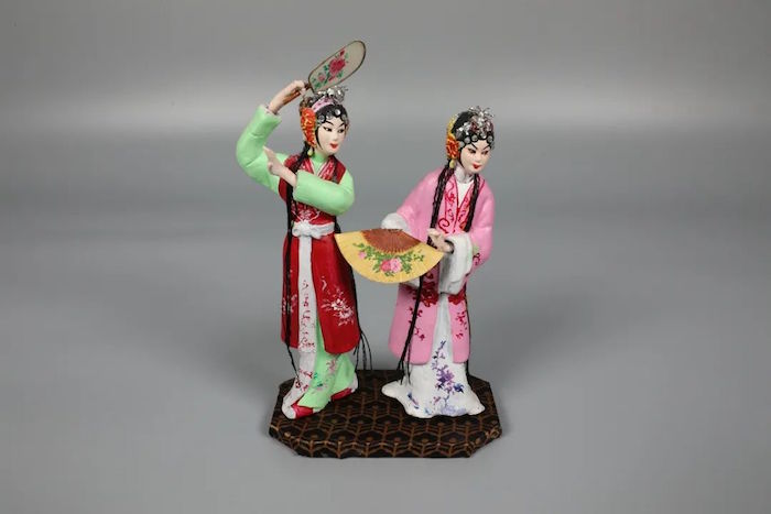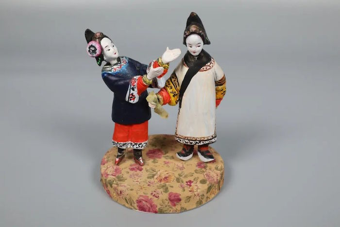 戏文泥人是苏州泥塑与昆曲及其他戏曲品类结合而形成的。一般两到三人为一台,选取戏曲中最为精彩的瞬间将其定格,分为“手捏戏文”和“绢衣泥人”两种表现形式。“手捏戏文”通体用泥塑造,并施以彩绘。