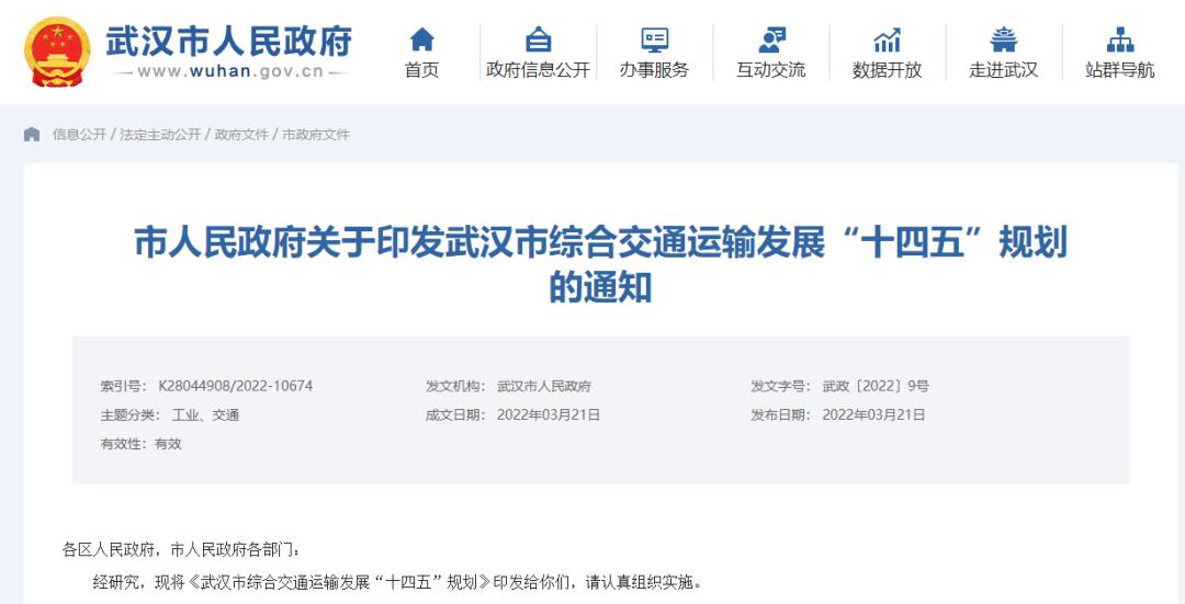 近日,武汉印发《武汉市综合交通运输发展“十四五”规划》(以下简称《规划》),根据规划蓝图,武汉将基本建成联贯长江经济带、联接“一带一路”、联通世界的国际性综合交通枢纽城市,融入“全国123出行交通圈”和“全球123快货物流圈”,有力支撑国家中心城市建设。
