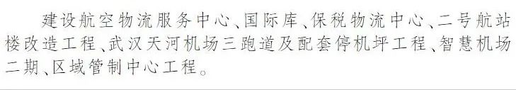 依托武汉天河机场和鄂州花湖机场,推动邮政和快件处理中心等基础设施与交通枢纽同步建设。