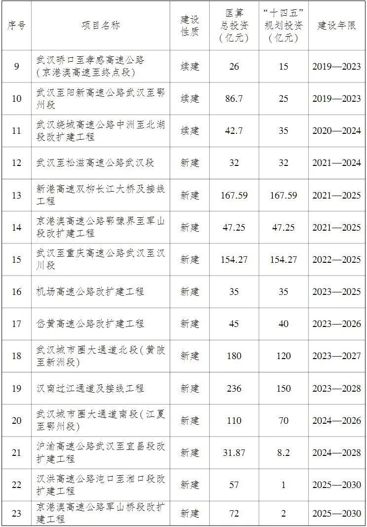 实施京港澳高速武汉段、沪渝高速武汉至黄石段改扩建。