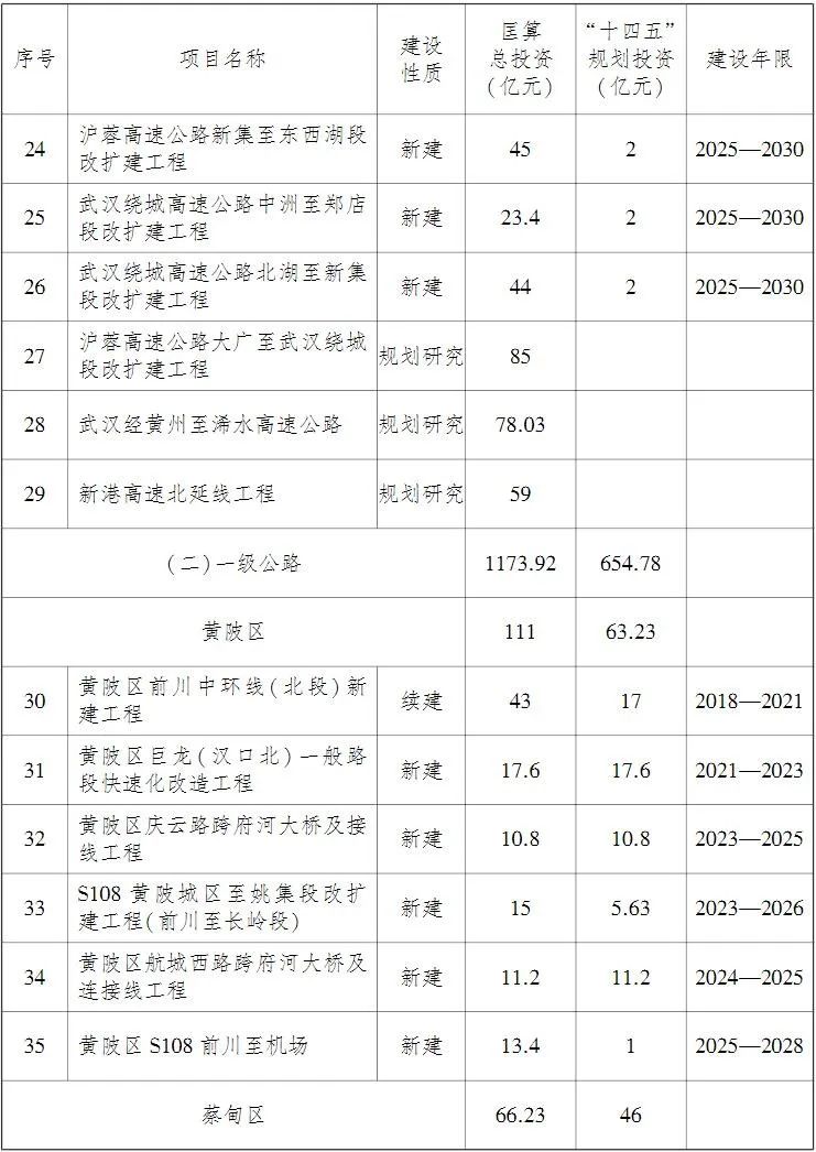 推进武汉经黄州至浠水高速、硚孝高速延长线、岱黄高速改扩建等项目前期工作。