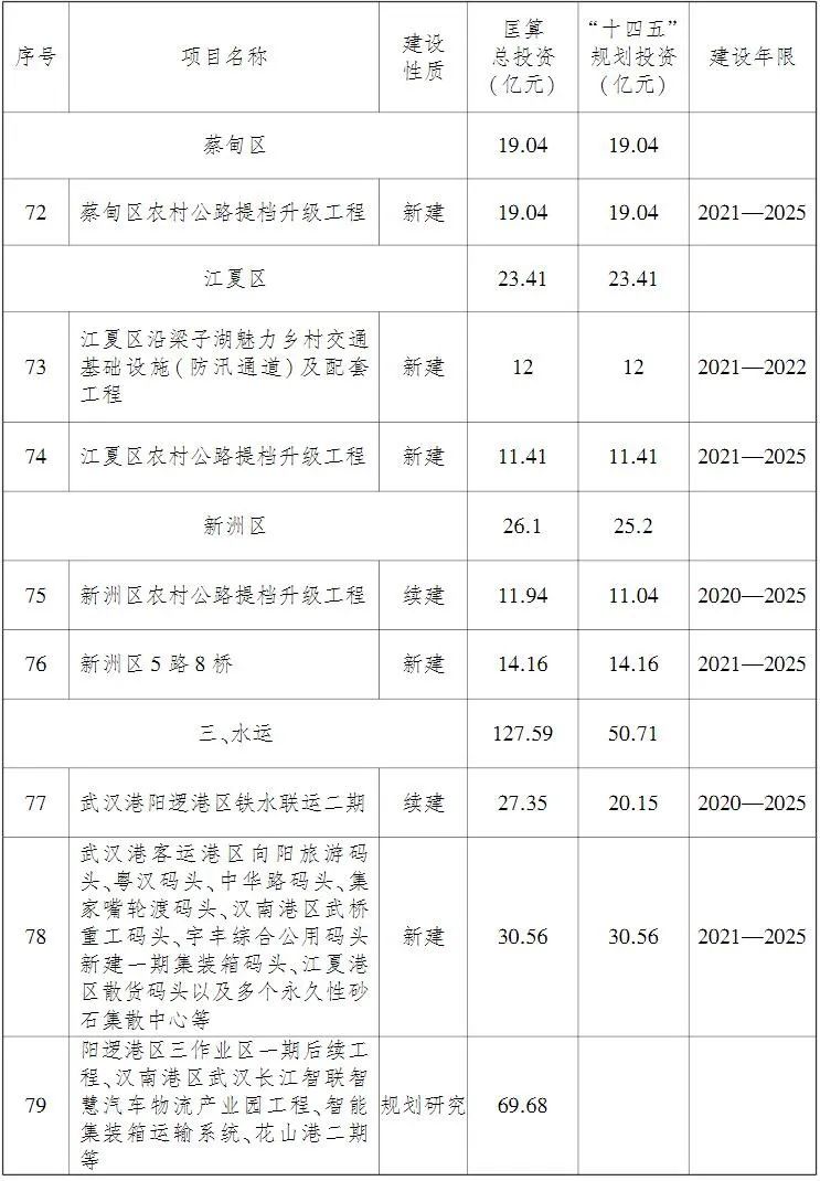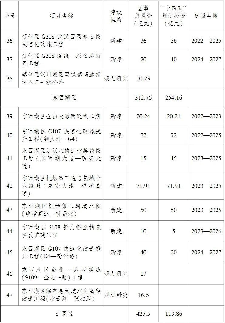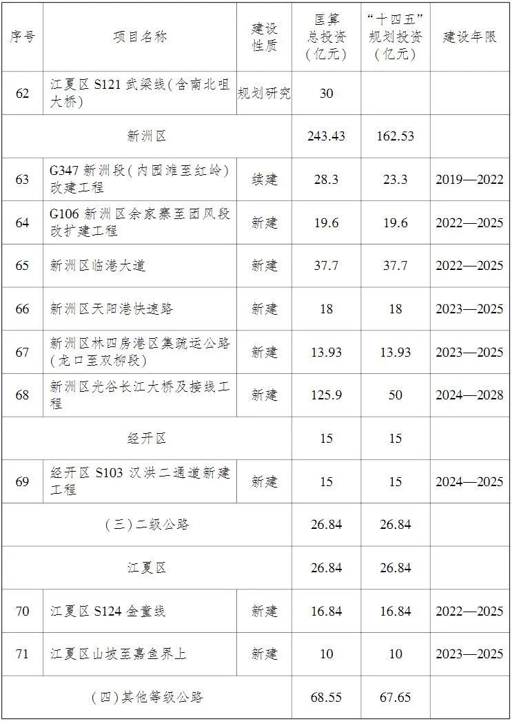 加快光谷、车谷等副城新增过江通道前期工作。加强黄陂、新洲区等与大别山革命老区红色旅游资源衔接的公路建设。