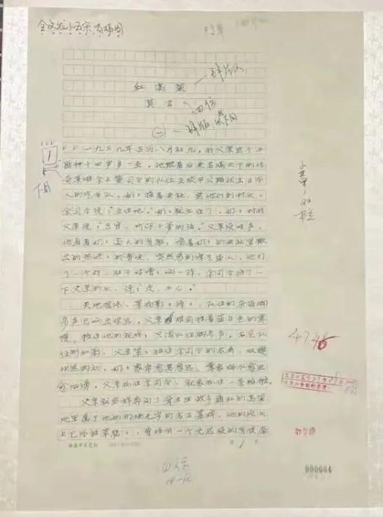 ▲张凤云 摄我们坐在舒同文化艺术研究会一间会客厅里。一张中式八仙桌,墙上挂着2012年诺贝尔文学奖宣布当天《齐鲁晚报》一张大红色新闻纸,走廊对面是莫言《红高粱家族》手稿首页放大版,解放军文艺社20×25规格稿纸上蓝色圆珠笔写着小字:文学,小五宋,双栏,有插图。很安静,莫言捐献给中华慈善总会的那一百个“福”字就是在这里写就的。
