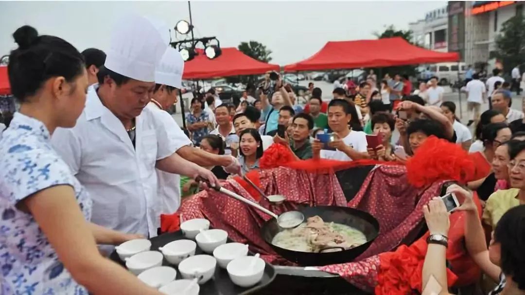 精心烹调的“红烧羊肉”如今寒冬已至,松江南北遵照“北红南白”的传统,也开设了众多的羊肉节。如已经举办数届的金山卫镇的“张桥羊肉文化节”,都会在冬至后开张持续到来年一月。张桥羊肉传说是当年明朝抗倭名将戚继光驻扎在金山卫时,由于卫所破旧,冬至苦寒,当地百姓很同情戚将军的部队,于是就用张桥羊肉去犒劳戍边将士,戚继光也随即在军中设宴,相传支起大锅十口,号称“千人锅”,煮食羊肉,香味飘满了小小的金山县城,军民同乐,举城欢腾。