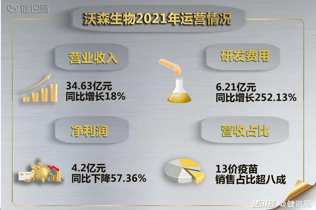 3月18日,沃森生物公布2021财报。公司2021年实现营业收入34.63亿元,同比增长18%,实现属于上市公司股东的净利润是4.28亿元,同比下降57.36%。