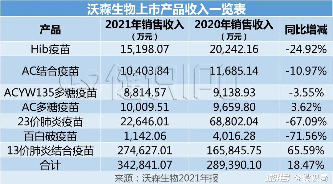 mRNA疫苗无疑是沃森生物和资本市场最期待的品种,不过当下的沃森,更值得依赖的是13价肺炎疫苗。2021年,沃森这款13价肺炎疫苗“沃安欣”的销售额27.4亿元,同比增长65.59%。