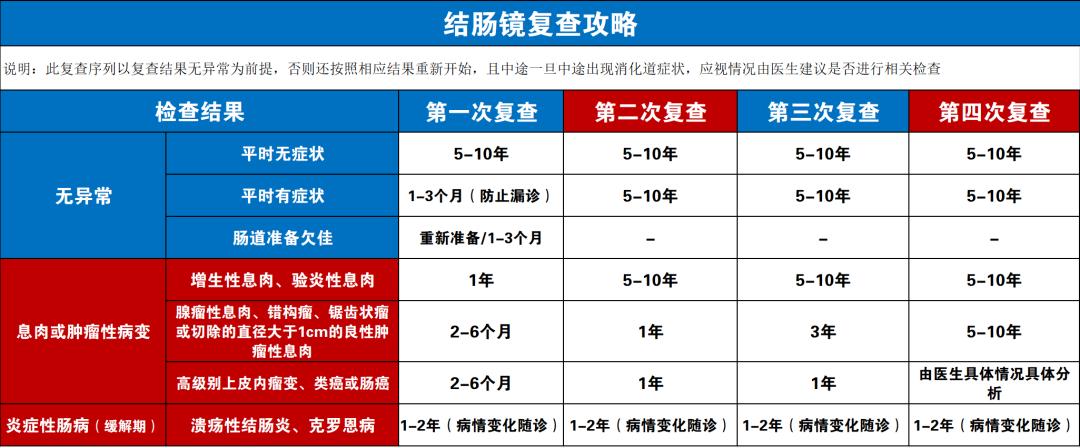 临床上通常根据结肠镜病理检查结果、切除完整性、肠道准备、健康状况、息肉家族史和既往病史等来决定复查时间;