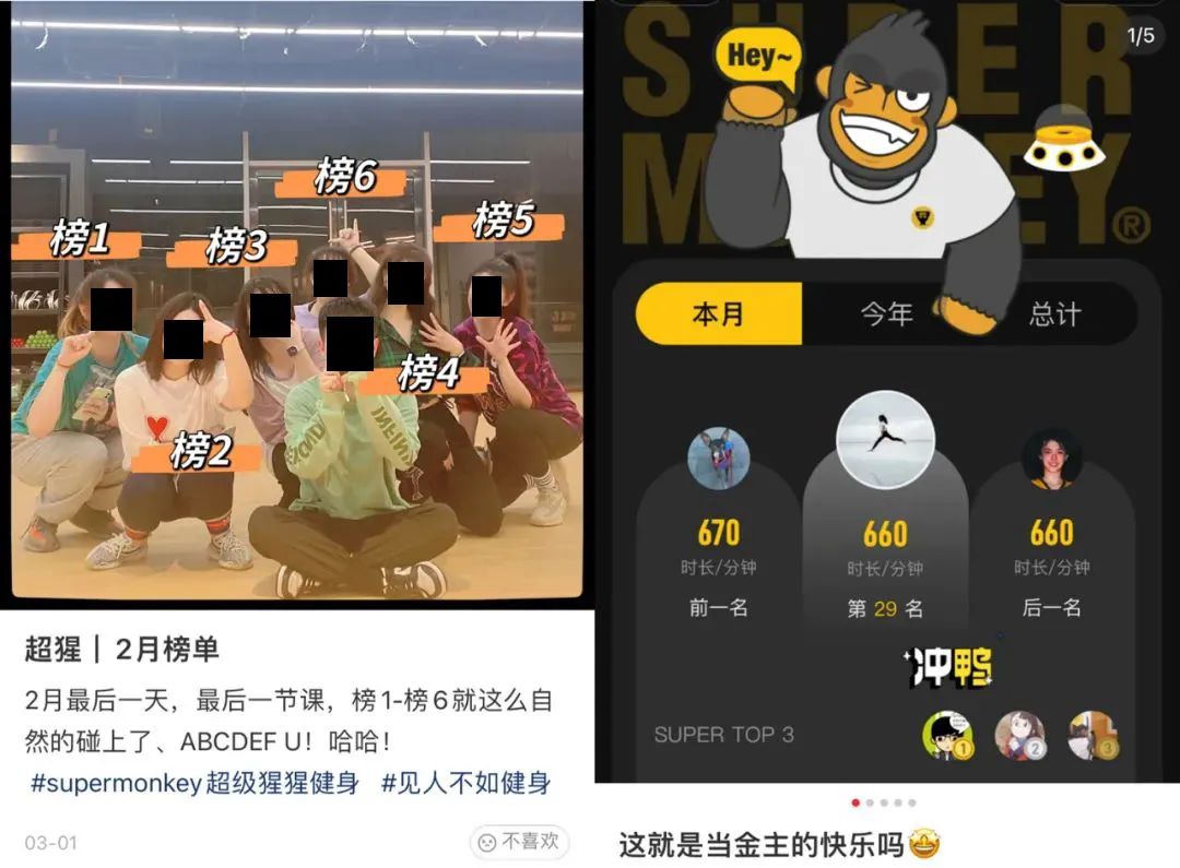 而且这可和在直播间给主播撒币不一样,在健身房“冲榜”不仅要花钱,还要花大量体力,才能冲成教练的铁粉。