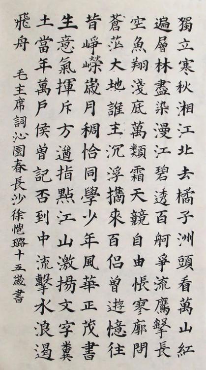 《沁园春·长沙》 徐恺璐 15岁(二等奖)