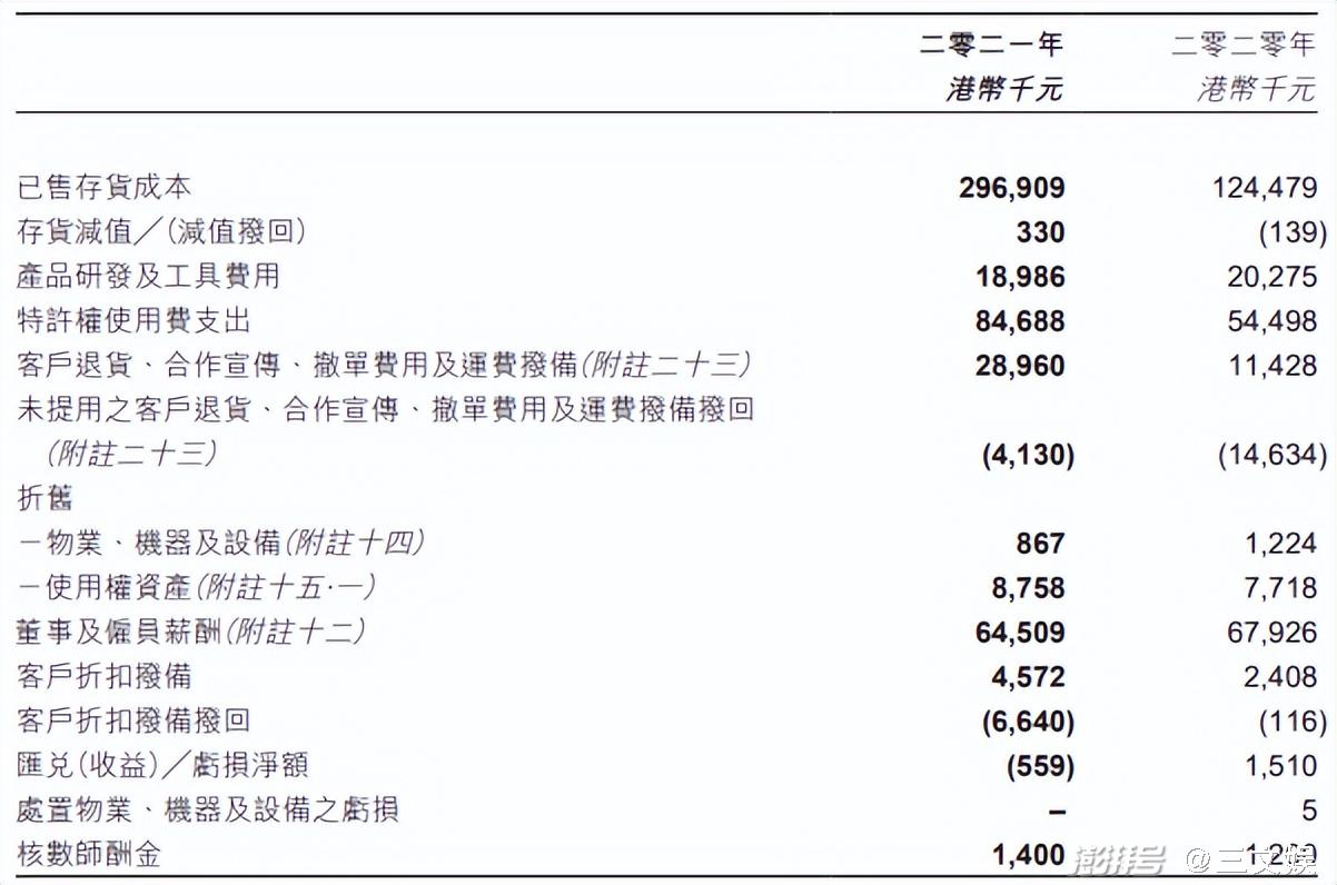 彩星玩具的模式高度倚重版权方,它的第二大成本是特许权使用费,2020与2021年分别为5449.8万和8468.8万港元,超过了薪酬成本。GFT的第二大销售成本是雇员成本。