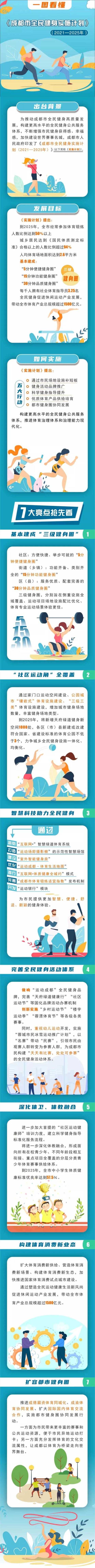 为贯彻落实《全民健身计划(2021-2025年)》和《四川省全民健身实施计划(2021-2025年)》,日前,成都市人民政府正式印发《成都市全民健身实施计划(2021—2025年)》。