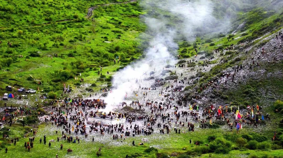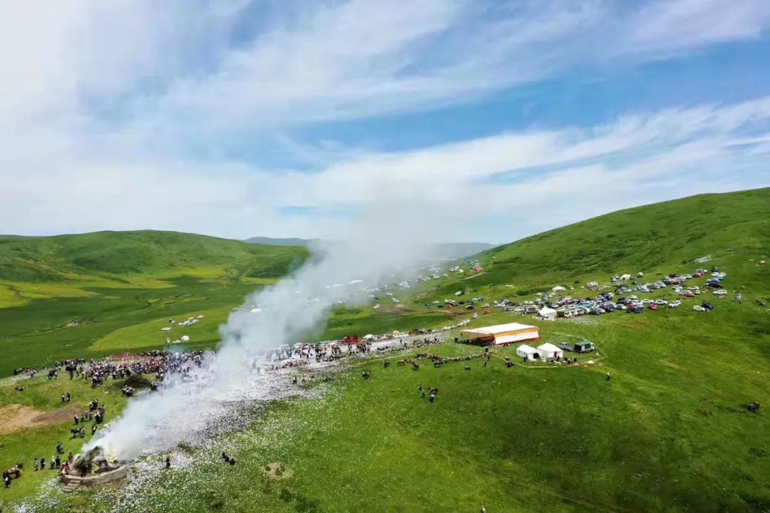 《红原县志》记载,祭祀山神一般在七八月间,各山神祭祀日不统一,近代已除去牲祭习俗,供献焚物要求洁净不沾荤腥污浊。安多地区共尊神山为阿尼玛卿山,有老祖先之意,下辖若干等级山神。