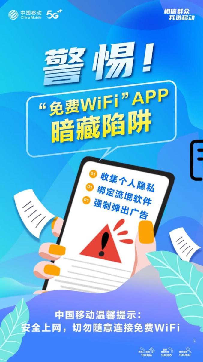 “这类免费WiFi的应用程序还在后台大量收集用户信息,不知不觉间,你的隐私就暴露了。”河南移动信息安全部相关负责人提醒,当用户安装了这些应用程序后,手机还会自动弹出广告,不看够5秒关不上,用户躲也躲不掉,建议尽量使用手机流量和自己的家庭WiFi网络。据了解,为满足广大用户安全上网需求,河南移动推出了100G和200G的居家流量包,定时定点使用,前六个月免费体验,到期自动退订。同时,还有FTTR全光WiFi服务,光纤入房间,网速更快,网络更加稳定,WiFi测速不达标立即进行赔付,更有全天候24小时的暖心服务,为用户提供畅快上网体验。