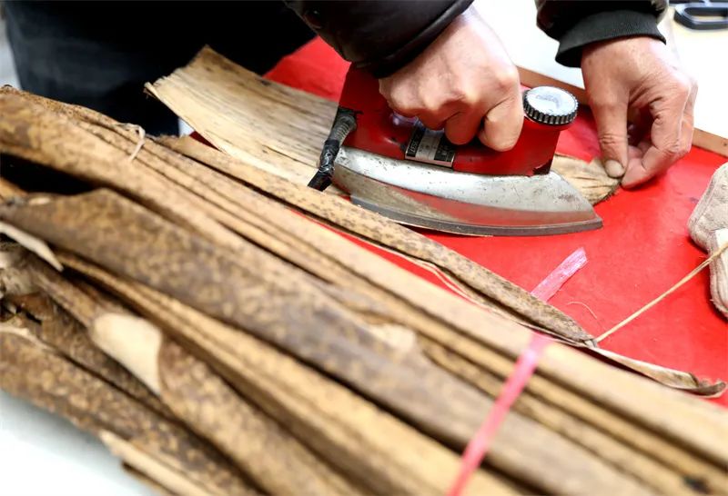 创作前,先将笋壳熨平。