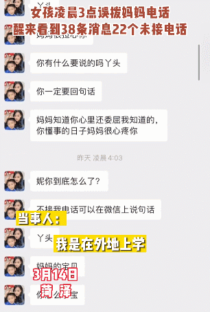 每一句都急切地想联系到女儿,除了微信消息,还有22个未接来电: