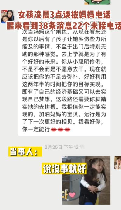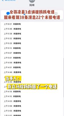 本周另一件让人泪奔的新闻,也是个“失联事件”,不过幸好,只是虚惊一场——#女儿凌晨误打妈妈电话,醒后22个未接来电#
