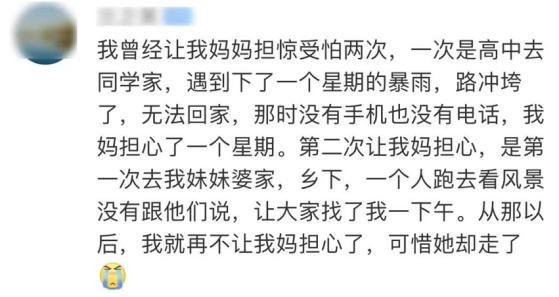 即使是离开了校园,工作了很多年,父母牵挂子女的样子依旧会让人破防。▼Cecilia有次和同事团建时,手机停机了好长一段时间,自己还没发现。突然有同事跟她说:“你妈好像在找你。”她惊了,妈妈怎么联系到她同事的?同事说,收到Cecilia的闺蜜在微博上发来的私信,Cecilia妈妈以为女儿出事了,着急坏了。