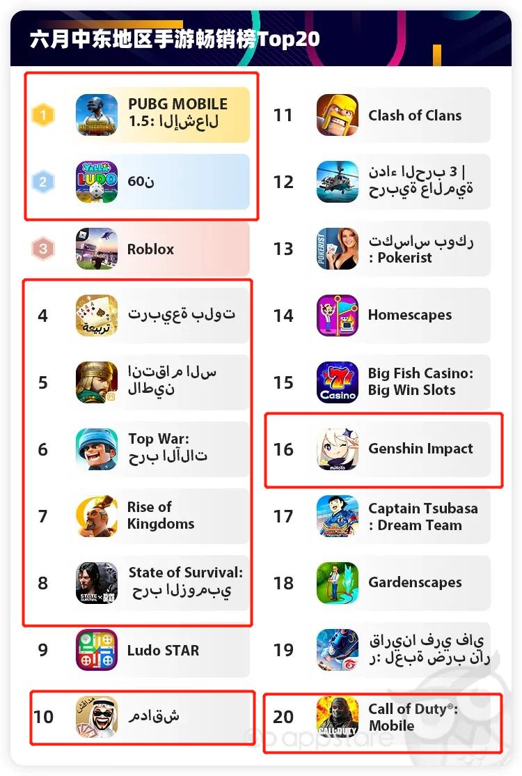 2021 年 6 月中东地区手游排行榜 ▼